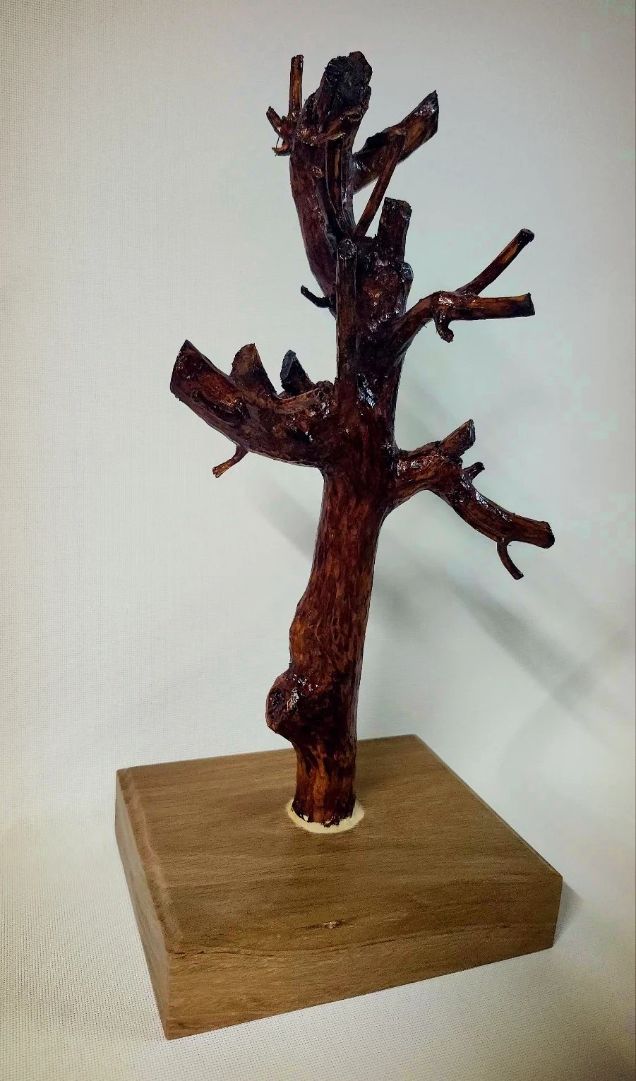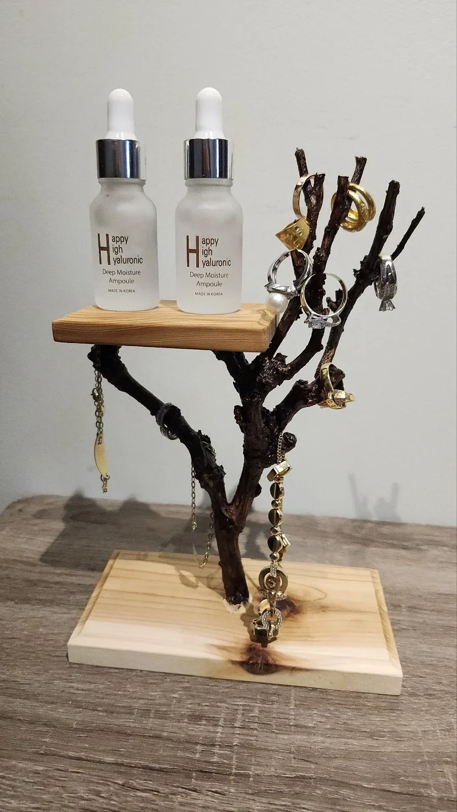 The contrast between the textured, darkened branches and the smooth wooden base highlights the natural character of the wood, making each piece entirely one of a kind. Whether used as a jewelry organizer, perfume or skincare display, or a standalone art object, this piece brings a calm, nature-inspired presence to any space.